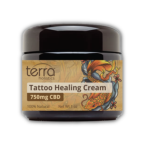 Protect your investment and precious artwork with Terra Holistics Tattoo Healing Cream. Our unique 100% all-natural blend of CBD, Black Cumin Seed Oil, Mango Butter, and Tea Tree Oil reduces soreness and inflammation, as well as moisturizes. Along with Manuka Honey and its amazing antibacterial properties, your work fresh ink will stay healthy, heal faster and set properly. After your new tattoo heals, continued use helps ensure that your work retains its vivid color. Containing up to 1500mg of CBD, our Tattoo Healing Creams are unlike any other CBD tattoo ointment or cream available today, and is by far one of the most effective.